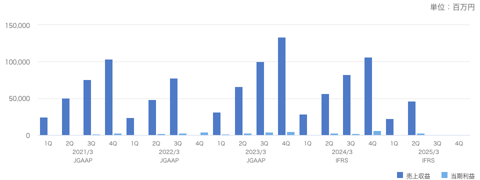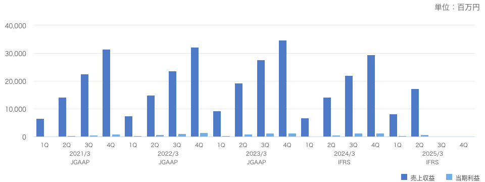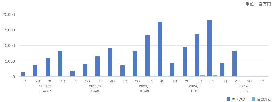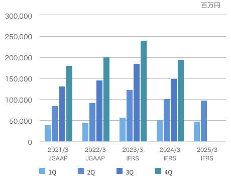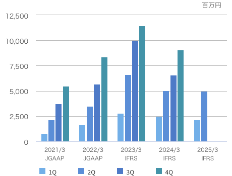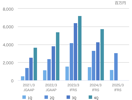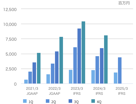 | 第1四半期 | 1,438 | 1,944 | 3,619 | 4,433 | 4,386 | |